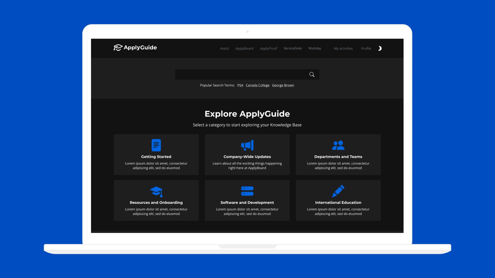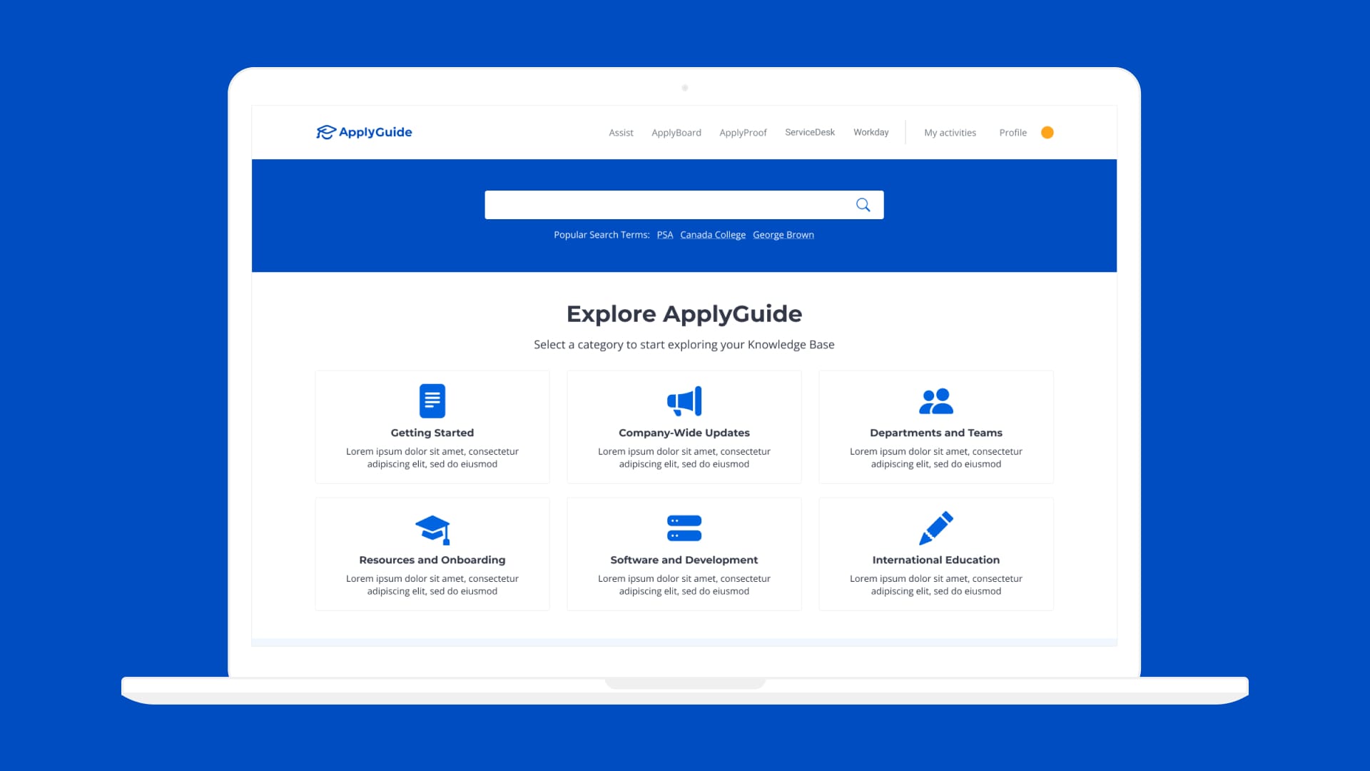 In 2021, I led the redesign of ApplyGuide, ApplyBoard’s internal knowledge base. The goal was to modernize the interface, improve accessibility, and create a user-friendly experience that made information easier to find, all while aligning with the company’s branding.