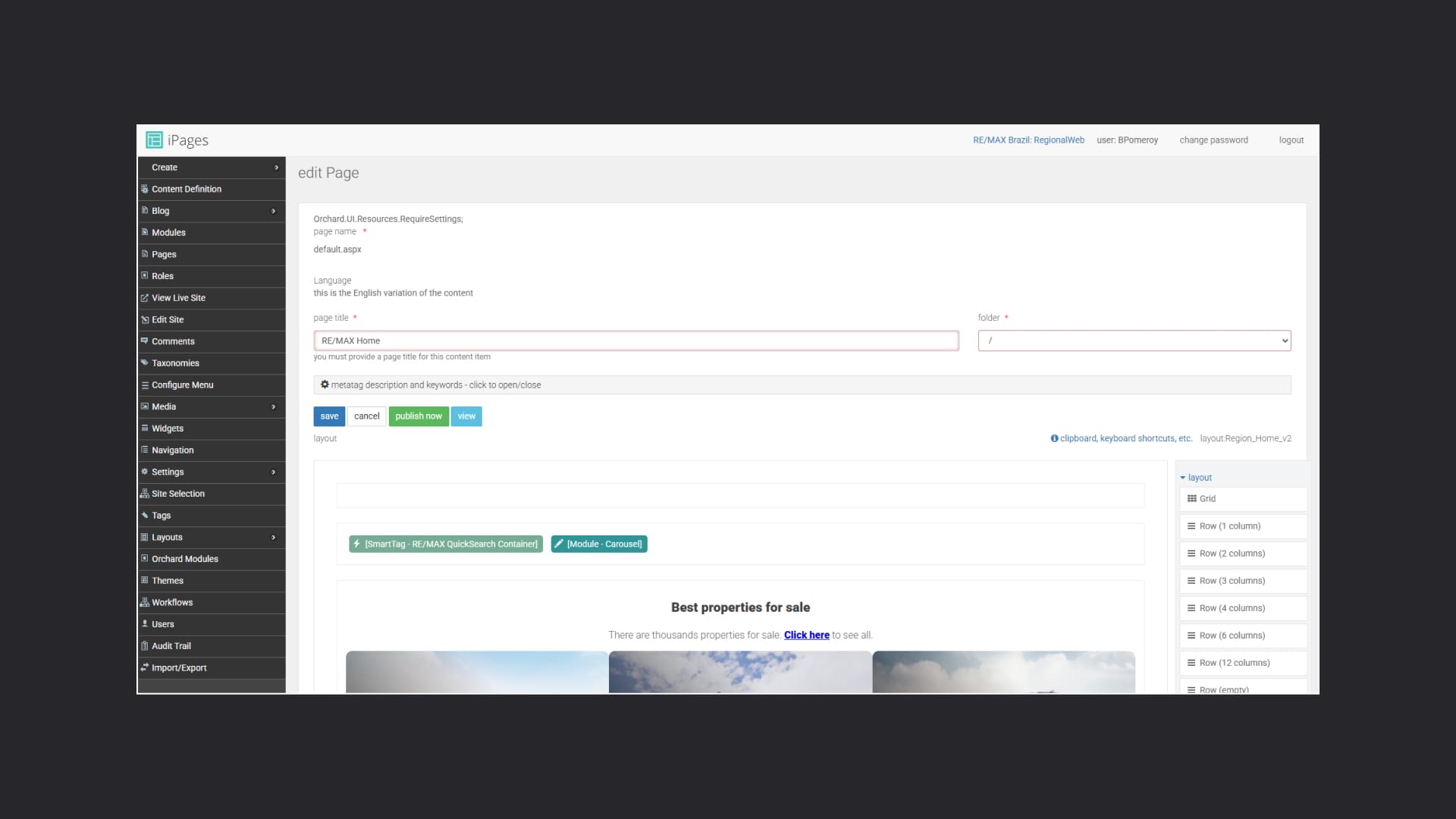 A screenshot of the original RE/MAX Brazil quick search and iPages page editor